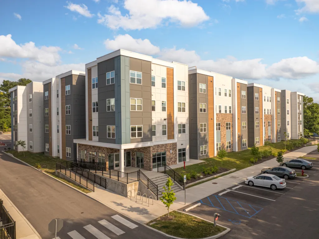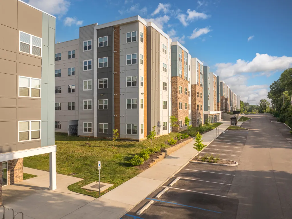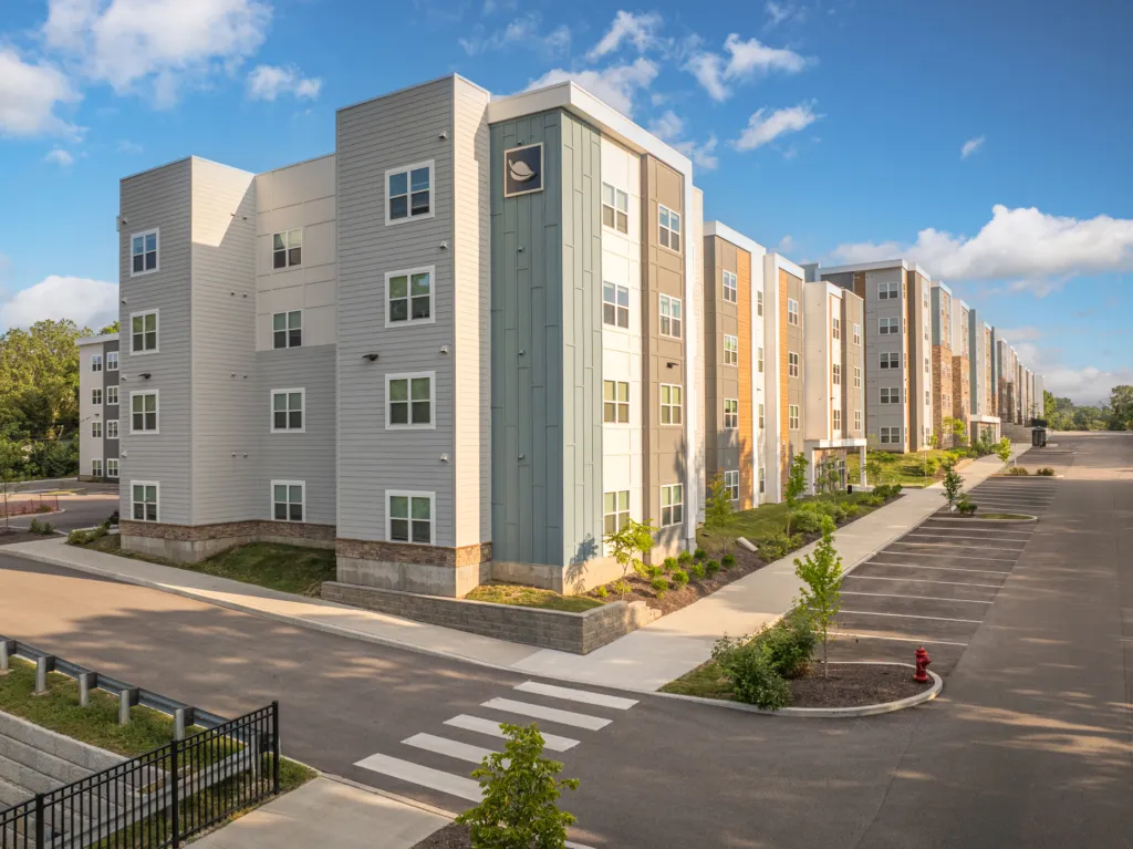 Aspen Bloomington is a modern student living community containing 241 units and 671 beds between four student housing buildings all nestled into one lot along West Gourley Pike in Bloomington, IN. The new purpose-built student living community consists of a two-story apartment building, two (2) four-story apartment buildings, and a five-story apartment building offering a range of unit types and living options. A resident clubhouse is located at the center of the campus within the five-story apartment building and offers a range of modern amenities like a study/co-working center, various social lounges, gaming lounge, and a fitness center, all situated immediately adjacent to an outdoor amenity deck that boasts a resort style pool and hot tub, with a poolside jumbotron TV area, offering student residents a space to socialize and relax.
