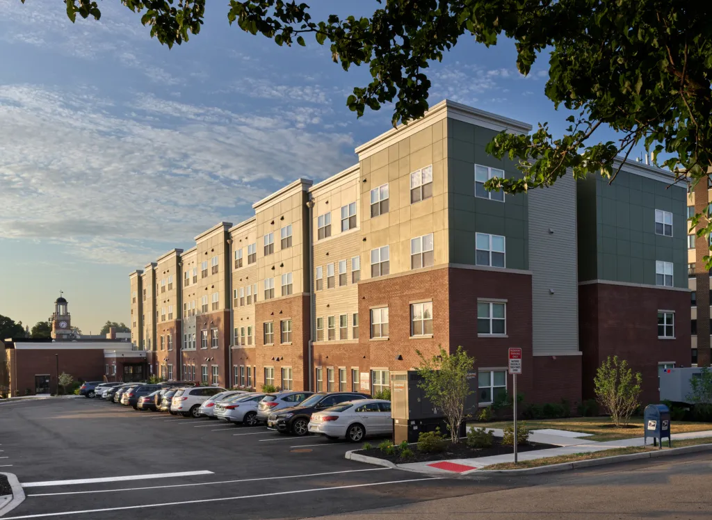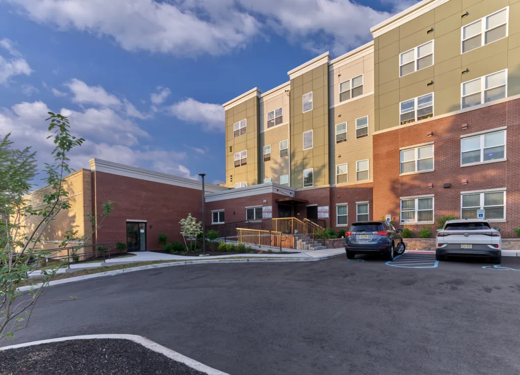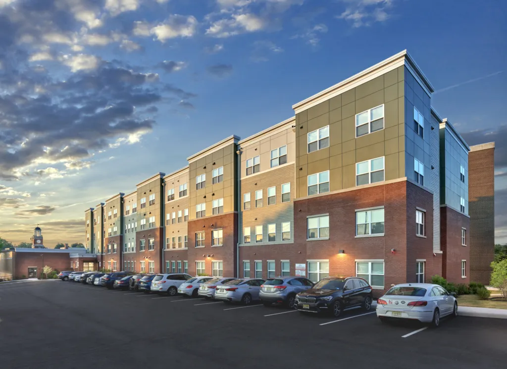West Orange Senior Housing is a new, 65-apartment affordable senior community developed by The Alpert Group in partnership with The Township of West Orange. This redevelopment was conceived within the context of a holistic, forward-looking municipal planning process that carefully assessed the remaining serviceable life for one of the town’s older municipal buildings while recognizing the need to construct a new library. This process identified the potential to adaptively reuse the obsolete library site to create new housing that would enable local seniors to age in place, within their community of choice. A part of the library building remains for future redevelopment as a senior community center.