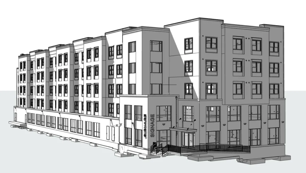 Terrrell Senior Residence includes four stories of apartments above a ground floor amenity level that includes secure resident parking, a management/leasing office suite, and supportive services offices. A spacious second-floor community room with floor to ceiling windows provides sweeping views of the Manhattan skyline and the fifth-floor roof deck offers views of Riverfront Park and the Passaic River to the west. Thriven Design provided architectural, MEP/ FP engineering, interior finishes and energy services for this project, which represents the first phase of implementation of the Millard Terrell Homes Master Plan, authored by Thriven Design in coordination with the Newark Housing Authority in 2021.
